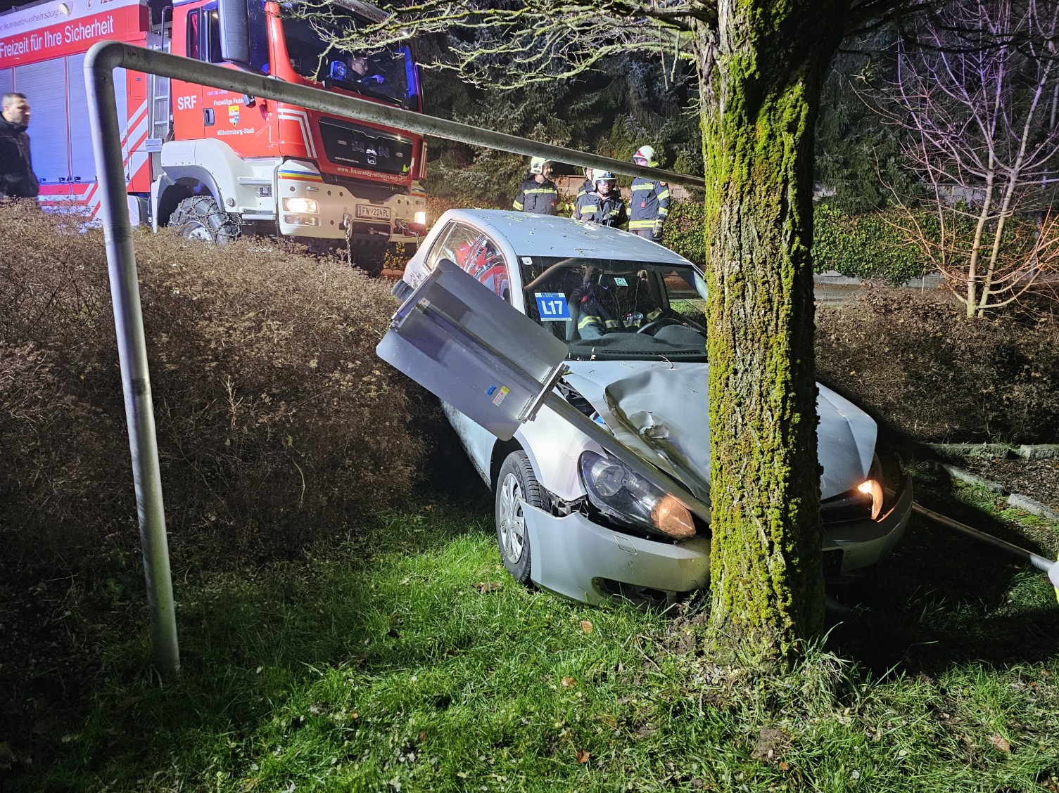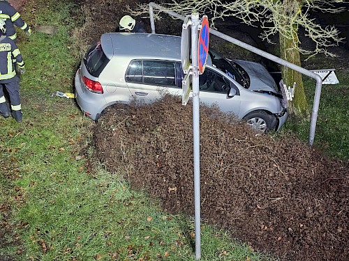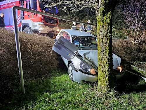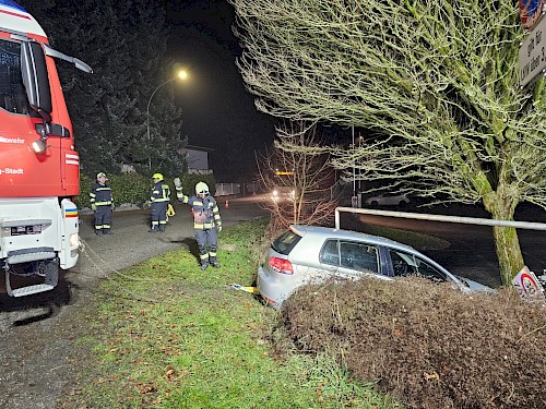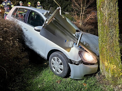 Am Sonntag, den 30. November, wurde die Feuerwehr Wilhelmsburg-Stadt um 18:19 Uhr zu einer Fahrzeugbergung auf die B20 alarmiert. Ein Fahrzeug war aus bislang ungeklärter Ursache von der Fahrbahn abgekommen, über eine Böschung hinuntergeraten und schließlich gegen einen Baum geprallt.