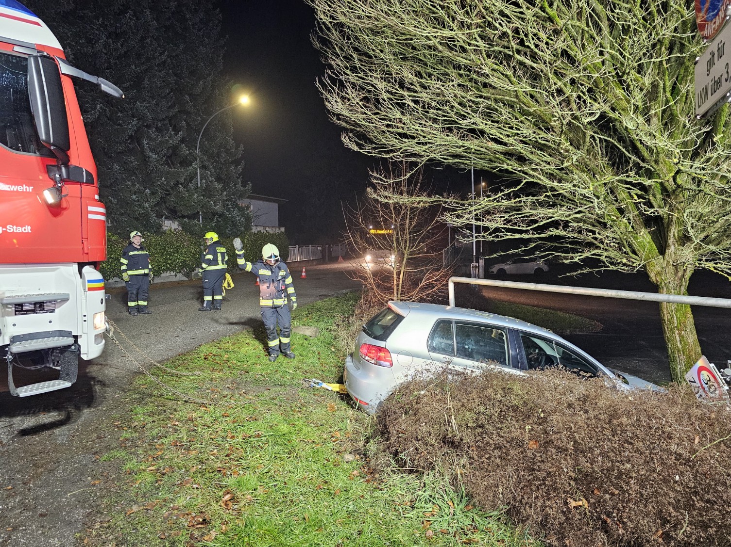 Die Feuerwehr rückte mit dem SRF (Schweres Rüstfahrzeug) und dem HLF 2 aus. Aufgrund der Lage des Fahrzeuges wurde entschieden, für die Bergung eine Kettenverbindung am SRF einzusetzen. So gelang es den Einsatzkräften, den Wagen kontrolliert wieder auf die Fahrbahn zu ziehen.