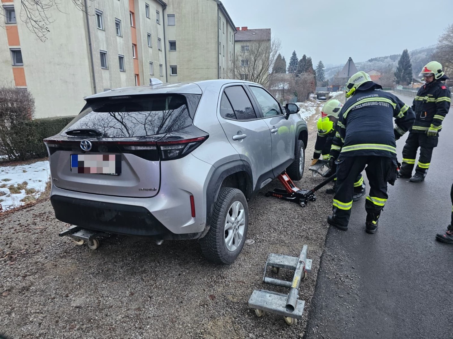 Da es sich beim beschädigten PKW um ein Hybridfahrzeug handelte, wurde dieser fachgerecht stromlos gemacht, um mögliche Gefahren durch Hochvolttechnik auszuschließen. Anschließend wurde das Fahrzeug mithilfe von Rangierrollern von der Fahrbahn entfernt und abseits der Fahrbahn abgestellt.