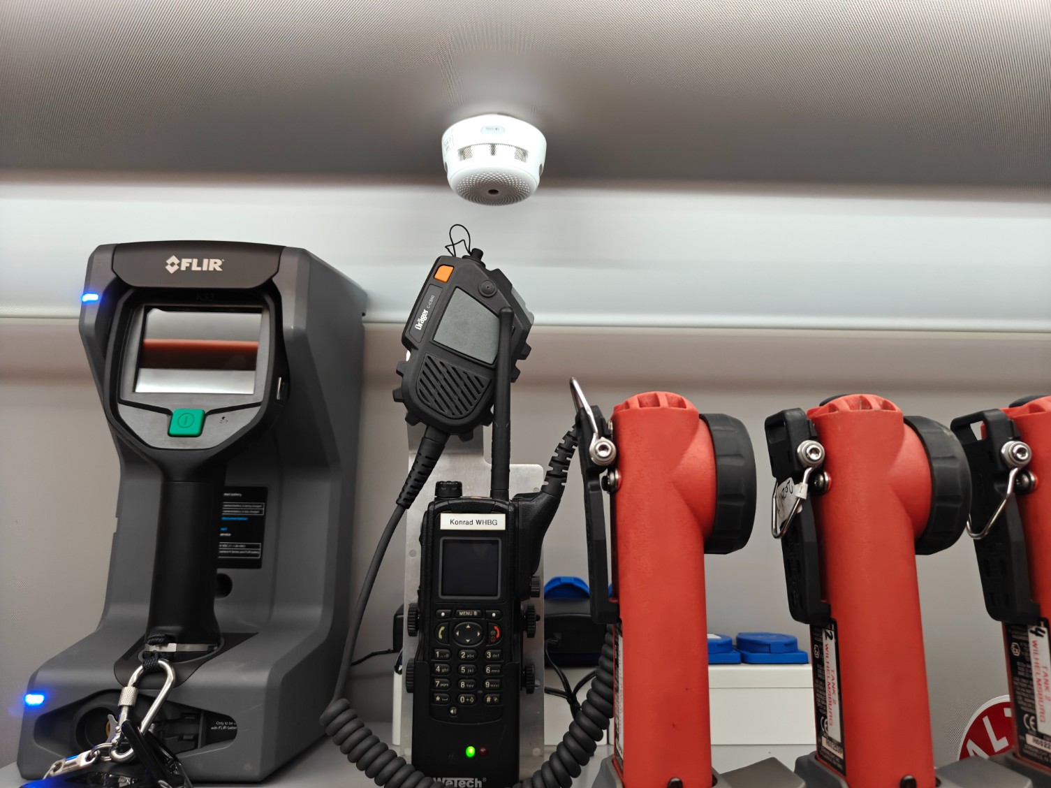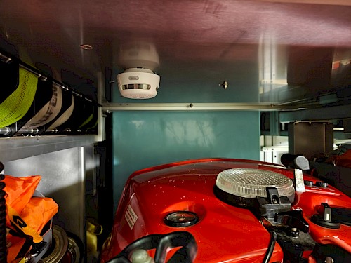 Zur weiteren Verbesserung des vorbeugenden Brandschutzes wurden in den Einsatzfahrzeugen der Feuerwehr Wilhelmsburg-Stadt Rauchmelder installiert, um sowohl die wertvolle Ausrüstung als auch die Fahrzeuge selbst zu schützen.
