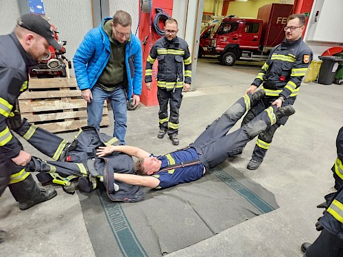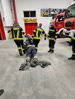 Im Theorieteil wurde unter anderem folgendes Vorgehen bei einem verunfallten Atemschutzträger behandelt: