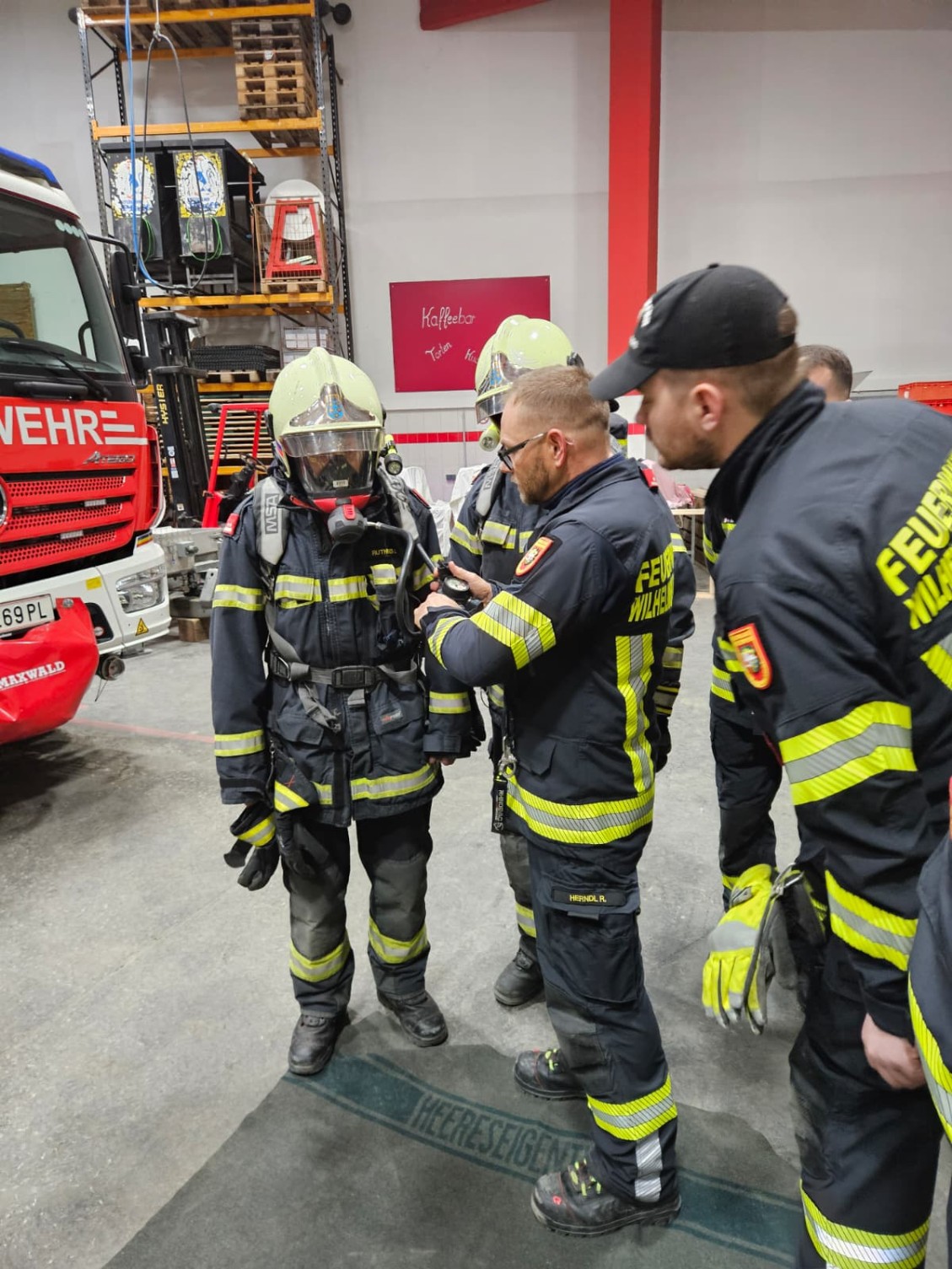 Zu Beginn versammelten sich die Teilnehmer im Lehrsaal, wo OBI Reinhard Herndl die theoretischen Grundlagen präsentierte. Er erläuterte Schritt für Schritt das standardisierte Vorgehen bei einem Atemschutz-Notfall. Besonders wichtig ist dabei der eindeutige Notruf „Mayday“, der ausschließlich in lebensbedrohlichen Situationen verwendet wird und den restlichen Funkverkehr sofort auf das Notwendigste reduziert.