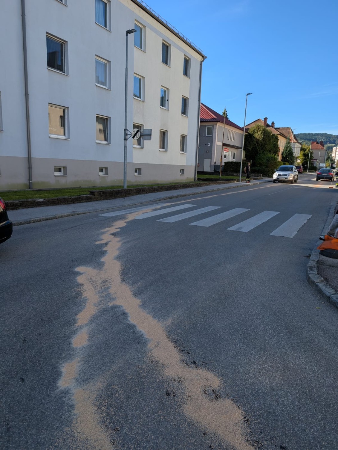 In der Lilienfelder Straße, vom Parkplatz einer Wohnhausanlage in Richtung des ehemaligen Laufen-Parkplatzes, hatte sich eine Ölspur gebildet. Die Feuerwehr streute die betroffenen Bereiche mit Bindemittel ab und beseitigte so die Rutschgefahr für den Straßenverkehr sowie für Anwohner.