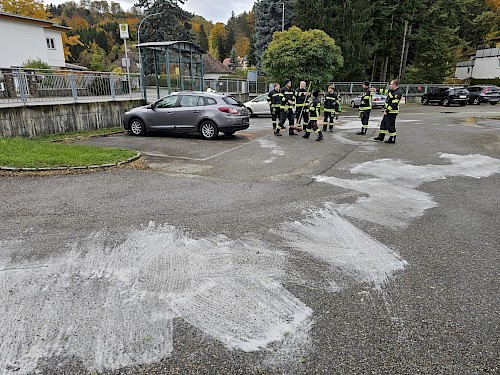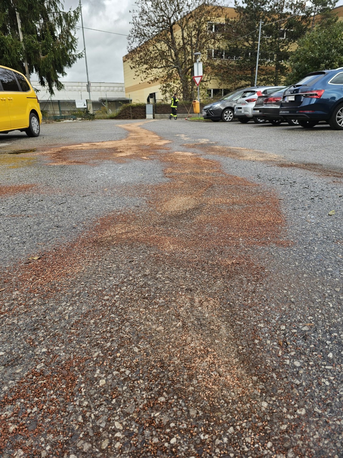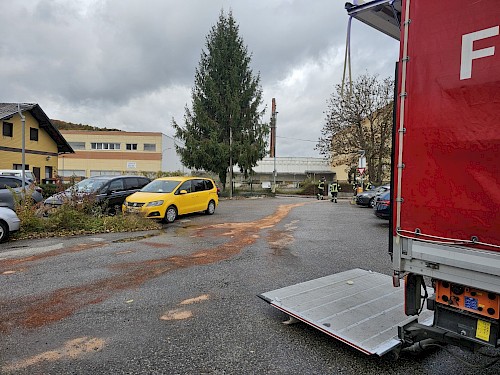 Die Feuerwehr rückte mit mehreren Fahrzeugen aus – darunter VF-A, HLF2, SRF, MTF sowie ein Stapler – und begann umgehend mit der Beseitigung der Verunreinigung. Die Ölspur wurde mit Bioversal und Ölbindemittel behandelt, um eine Gefährdung für den Verkehr und die Umwelt zu verhindern.