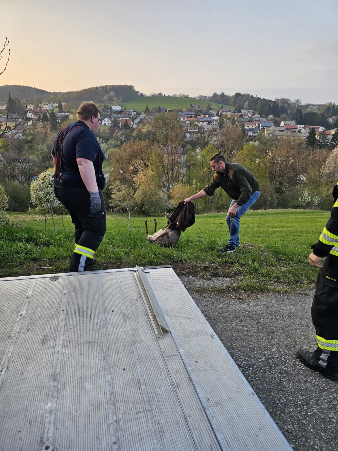 Das Tier wurde anschließend gemeinsam mit dem Feuerwehrmitglied in das Versorgungsfahrzeug (VFA) verladen und in den Bereich Bösendörfl gebracht. Dort konnte der Rehbock wieder wohlbehalten in die freie Wildbahn entlassen werden.