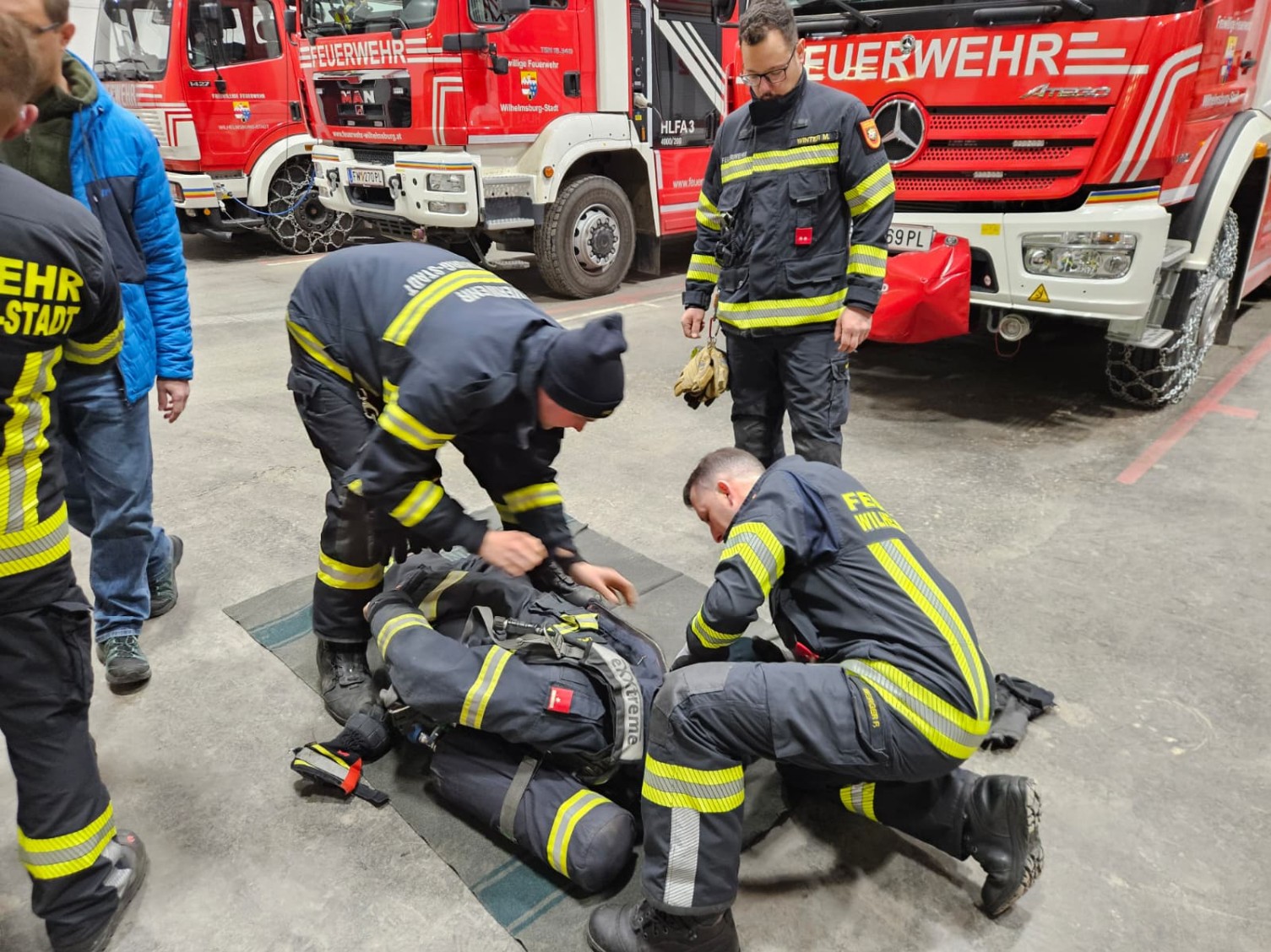 Am Montag, dem 2. Februar, stand bei der wöchentlichen Feuerwehrübung alles im Zeichen der Atemschutz-Notfallrettung. Ziel der Einheit war es, die Atemschutztrupps bestmöglich auf kritische Situationen vorzubereiten, in denen ein Truppmitglied im Einsatz verunfallt oder in Not gerät.